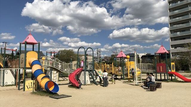 大阪の公園 錦織公園の大型複合遊具①「水辺の里」