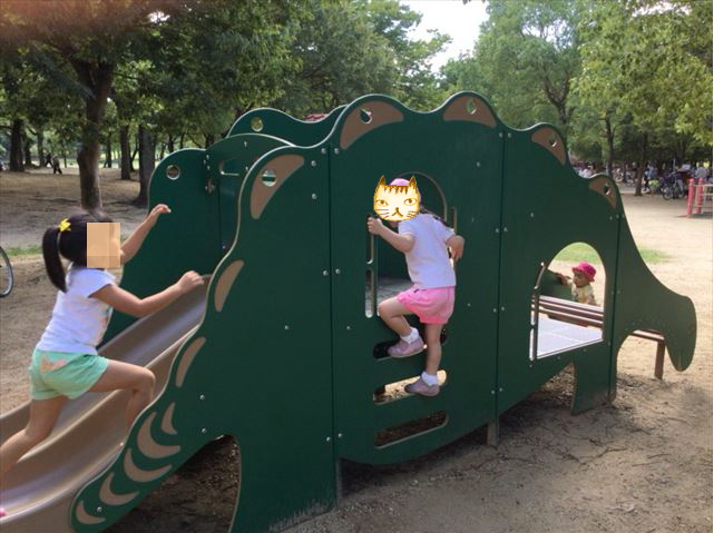 大仙公園の遊具2:恐竜滑り台・幼児向け