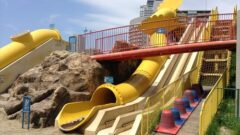 すぐ隣に、前回記事にした「高石児童遊技場」もあります。ロッククライミングや高速スライダー(滑り台)があります。