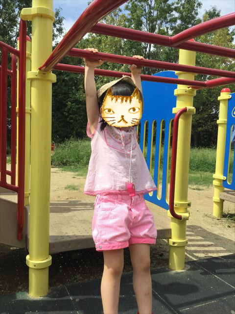 反対側から撮影。難易度が高いといっても雲梯だけが高い位置にあるだけで、幼児でも問題なく遊べます。