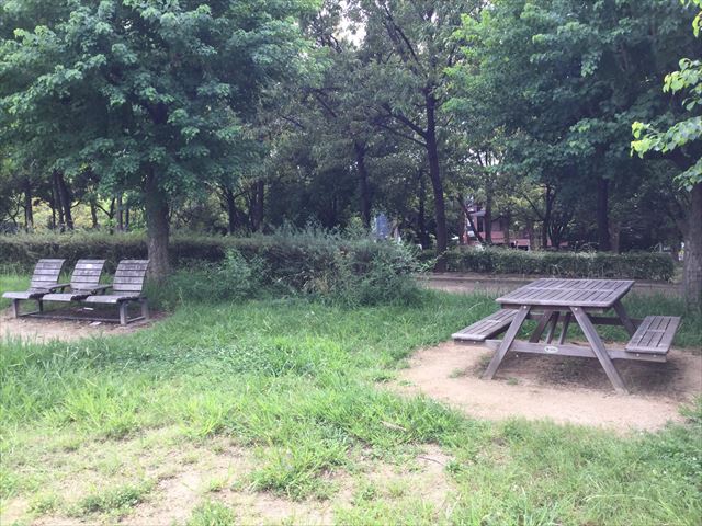 鶴見緑地公園の遊具①周辺のベンチ
