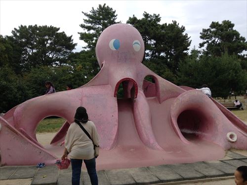 古い遊具ですがタコ滑り台もあります。たくさん遊具があるので分散して遊べます。