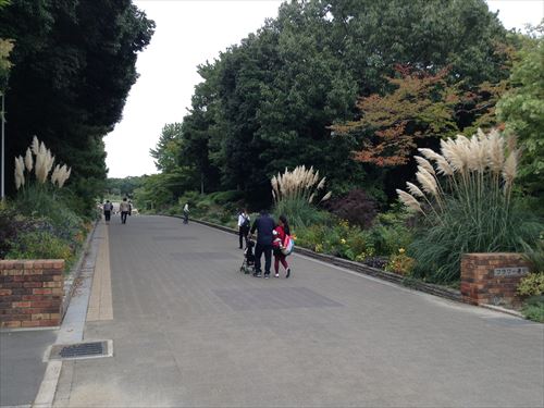 服部緑地のフラワー通り。ここをぬけると遊具公園「こどもの楽園」に着きます。