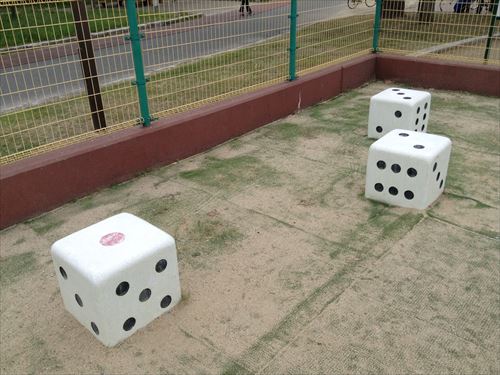 サイコロの台。座ったり立ったり。下は人口芝があるのでクッション性はありました。