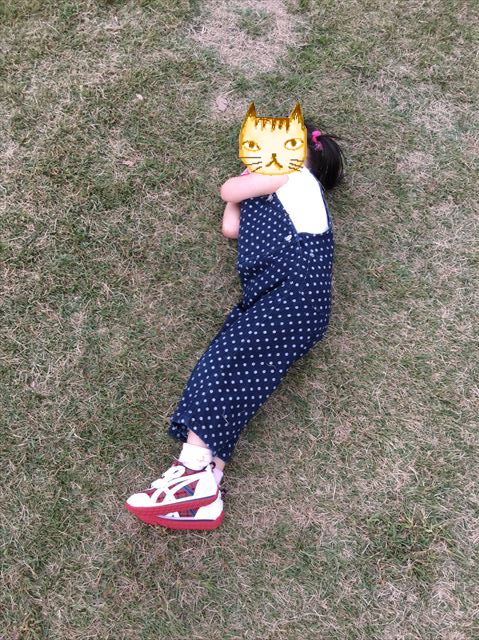あまりに気持ちがいいと、なぜか芝生で寝たふりする娘。