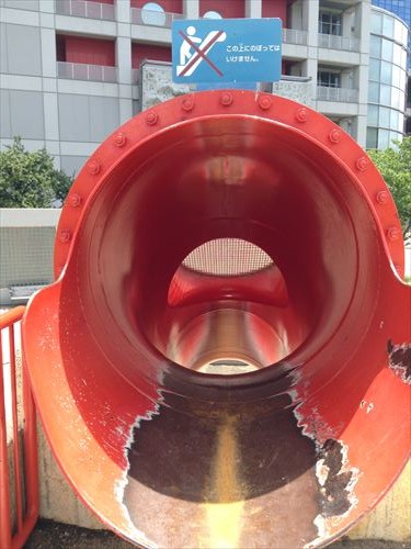 実はこの滑り台、錆びているので何か段ボールのような敷物で滑らないとズボンに錆が付きます。ご注意ください。