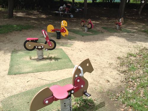 固定された乗り物遊具。凝っています。オシャレでカッコイイですね。
