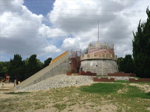 大型滑り台を横から撮影。これも変わったつくりになってますね。結構勇気がいる滑り台です。
