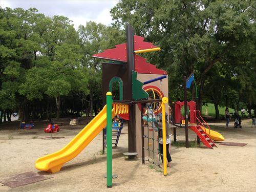バーベキューエリアから近いので大泉緑地の遊具の中でも一番混雑しているエリアです。
