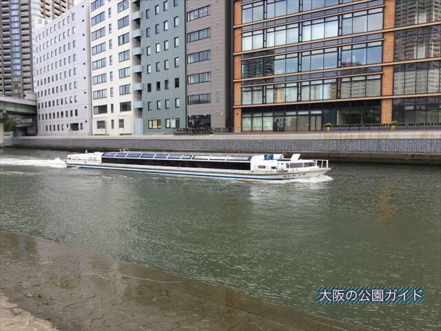 目の前に土佐堀川があり、そこに観光の船が行き来しています。子供たちは船に乗車している旅行観光客に手を振るのが大好き。旅行観光客の方も手を振り返してくれますよ。
