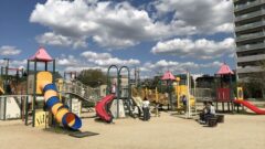 床は人口芝とその下にクッションがあるので気持ちよさそうです。遊具も安全に配慮されているので安心です。野外なんで、暑くなると厳しいでしょうね。