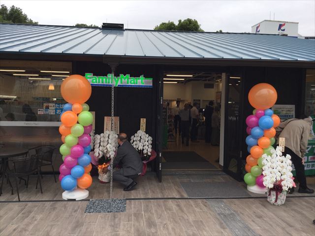 入口すぐ右側にコンビニ「ファミリーマート(ファミマ)天王寺公園エントランス店」があります。シンプルな木の造りになっています。