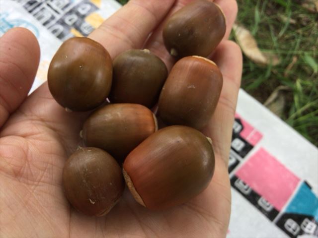 乗馬苑前で大きなどんぐりを発見!