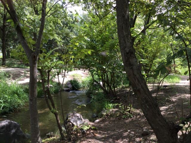 緑のせせらぎ周辺の様子。鶴見緑地公園